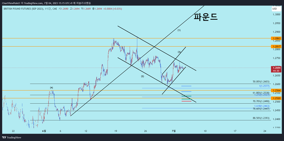 - 파운드 역시 다른 통화 종목들과 비슷하게 장기 추세선 (1번) 하향 이탈 이후 조정세를 보여줬습니다.