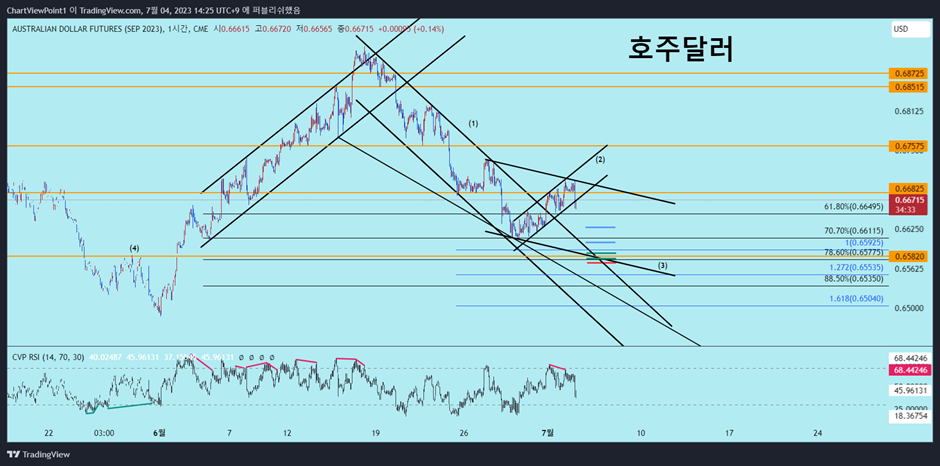 - 호주달러는 1번 하락 평행채널 상향 돌파 이후 2번 상승 평행채널 내에서 상승 흐름을 이어나가고 있습니다.